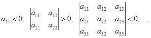 Для того, чтобы квадратичная форма (2), (3) была отрицательно-определённой, необходимо и достаточно, чтобы