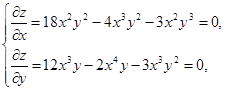 Как видим, для нахождения точек экстремума нам нужно решать систему, в общем, нелинейных уравнений (1), а для выяснения характера точки экстремума нужно на основе критерия Сильвестра проверять условия (5), (6) и (7) для дифференциальной квадратичной формы (4) в точке экстремума. Проиллюстрируем этот метод на примере 5: Функция двух переменных: