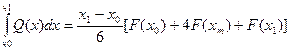 Пусть x m – это средняя точка интервала [x 0 , x 1 ] и пусть Q (x ) – единственный полином второй степени, который интерполирует (приближает) подынтегральную функцию F (x ) по точкам x 0 , x m и x 1 . Искомый интеграл аппроксимируется интегралом от функции Q (x ):