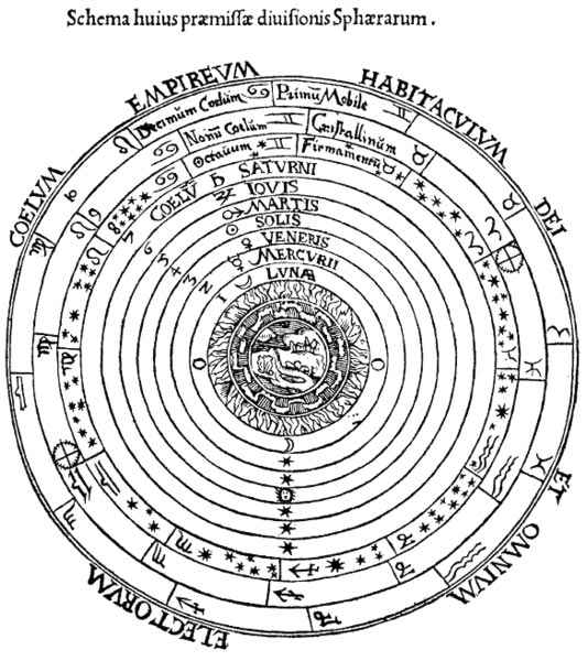 Средневековое изображение геоцентрической системы (из Космографии Петра Апиана, 1540 г.)
