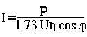 Потребляемый электродвигателем ток в выше приведенных формулах, при известной мощности электродвигателя, можно вычислить из следующего выражения: