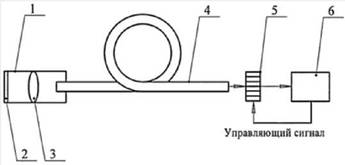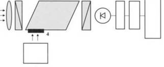 1 - входная оптика; 2 - поляризатор; 3 - акустооптический блок; 4 - источник ультразвукового сигнала; 5 - анализатор; 6 - фотоприемник; 7 - элемент Пельтье;