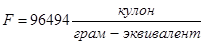 Таким образом, число Фарадея F численно равно количеству электричества Q, при прохождении которого через электролит на электроде выделяется один грамм-эквивалент вещества.