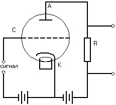 Работа лампы триода основана на управлении током в лампе, для этого внутри лампы ставится сетка.