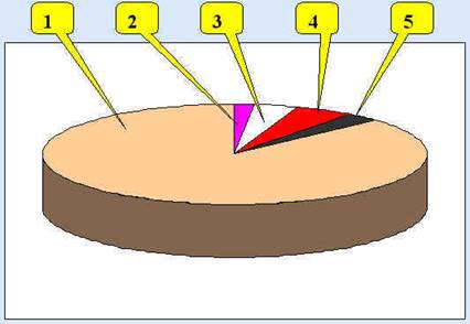 Рис.1. Классы фундаментальных физических констант. 1 – атомные и ядерные константы. 2 –универсальные константы. 3 –электромагнитные константы. 4 –физико-химические константы. 5 –общие атомные и ядерные константы.
