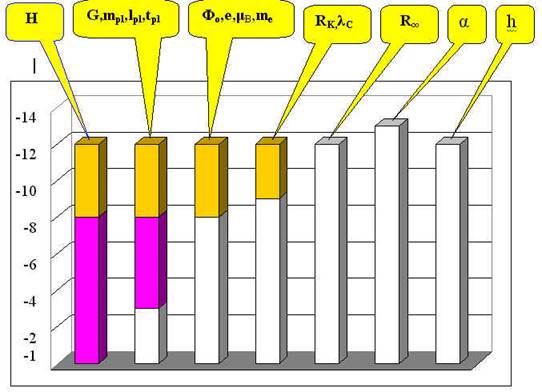 Рис.2. Сравнительная диаграмма точности фундаментальных констант.