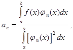 Пусть теперь f (x ) - любая функция непрерывная на отрезке [a ,b ]. Рядом Фурье такой функции f (x ) на отрезке [a ,b ] по ортогональной системе называется ряд: