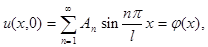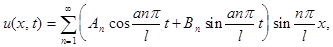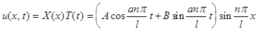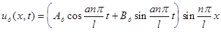 Пусть в состоянии равновесия натянута струна длинной l с концами x= 0 и x =l . Предположим, что струна выведена из состояния равновесия и совершает свободные колебания. Будем рассматривать малые колебания струны, происходящие в вертикальной плоскости.
