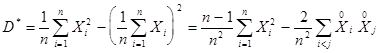 Перейдем к оценке для дисперсии D . На первый взгляд наиболее естественной представляется статистическая дисперсия D * , то есть среднее арифметическое квадратов отклонений значений Xi от среднего :