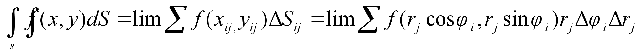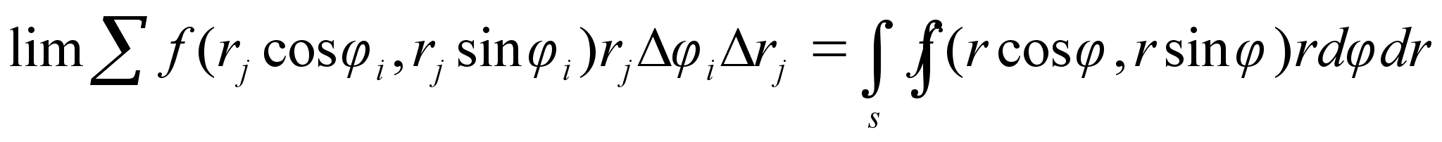 где d - максимальный диаметр ячеек Sij и сумма распространена на все ячейки указанного выше вида, целиком содержащиеся в области S. С другой стороны, величины i и rj суть числа и их можно рассматривать как прямоугольные декартовые координаты некоторых точек плоскости Or. Таким образом, сумма (4) является интегральной суммой для функции