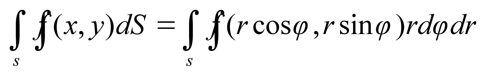 называется двумерным элементом площади в полярных координатах. Итак, чтобы в двойном интеграле (1) перейти к полярным координатам, достаточно координаты x и y заменить по формулам (2), а вместо элемента площади dS подставить выражение (7).