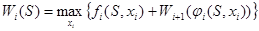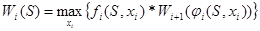6. Записать основное рекуррентное уравнение динамического программирования, выражающее условный оптимальный выигрыш Wi (S) (начиная с i-го шага и до конца) через уже известную функцию Wi +1 (S):