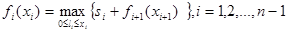 )- оптимальная сумма инвестиций для интервала от і-го до n-го года при условии, что в начале і-го года имеется денежная сумма xi