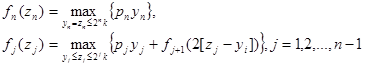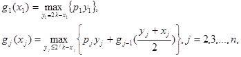Итак, в данном случае рекуррентное уравнение для обратной прогонки в алгоритме динамического программирования имеет вид