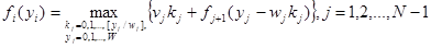 Заметим, что максимальное допустимое значение kj ограничено величиной [yj /wj ]. Это позволяет автоматически исключать все не являющиеся допустимыми варианты при заданном значении переменной состояния yj .