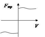 В случае же “сухого трения” при скорости, стремящейся к нулю, сила трения с двух сторон стремится к разным конечным пределам (в частности противоположным по знаку, но одинаковым по абсолютной величине), т.е. при нуле претерпевает разрыв: