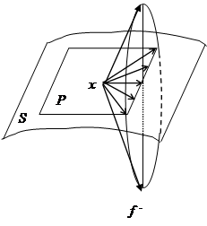 В случае, когда f ( t , x ) разрывна по t и непрерывна по x (пример 1), решением уравнения можно назвать функции, удовлетворяющие интегральному уравнению. В этом случае, решения с одной стороны от S подходят к S , а с другой стороны сходят с S (траектории “прошивают” поверхность):