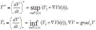 В теории систем с разрывной правой частью учитываются как инженерно-физические, так и чисто математические соображения. Эта теория обеспечивает возможность математического исследования указанных систем, т. е. включает стандартные теоремы существования решений, их проджолжимости, теоремы качественной теории. Во второй главе приведено определение решения разрывных систем А.Ф. Филиппова. Как было отмечено, это определение соответствует минимальному возможному построению множества F ( t , x ) среди всех допустимых. Помимо определения Филиппова имеются и другие определения решений разрывных систем и диф. включений: Айзермана и Пятницкого [1] Викторовского [6], Матросова [8].