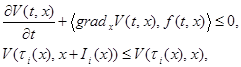 Для диф. включения (12) существует определенно-положительная функция V(t, x) , удовлетворяющая неравенству