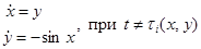 Второе уравнение системы (11) дает возможность решению уравнения (10) сойти с поверхности разрыва. Т.о., диф. уравнения с разрывной правой частью можно подвергнуть импульсному воздействию в момент прохождения изображающей точки поверхности разрыва.