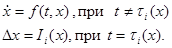 Теория систем с разрывной правой частью может быть сведена к теории диф. уравнений с импульсными возмущениями, а именно к системам с нефиксированными моментами импульсного воздействия, определение которых было дано в §2.
