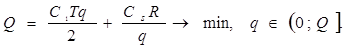 Задача 2: Торговое предприятие намерено завести и реализовать товар n видов объемами соответственно Rn. Весь объем складских помещений составляет V. Стоимость хранения одной единицы товара равна C1n. Расходы по завозу Csn. При этом каждая из n единиц занимает Vnметров. Найти оптимальные размеры поставок каждого из видов товара.
