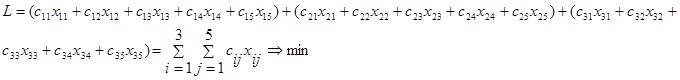 Таким образом, поставленная задача сводится к следующей: найти такие неотрицательные значения переменных x 1 , x 2 , x 3 , x 4 , чтобы они удовлетворяли ограничениям – неравенствам и одновременно обращали в минимум линейную функцию этих переменных: