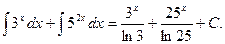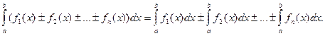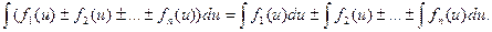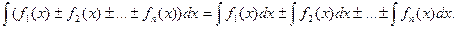 4. Неопределенный интеграл от алгебраической суммы конечного числа функций равен алгебраической сумме интегралов от этих функций: