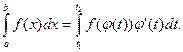 Теорема. Если функция f( x) непрерывная на отрезке [ a; b], а функция x=φ( t) непрерывно дифференцируема на отрезке [ t1 ; t2 ], причем φ([ t1 ; t2 ])=[ a; b] и φ( t1 )= a, φ( t2 )= b, то справедлива формула:
