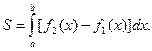 Площадь фигуры, ограниченной кривыми y= f1 ( x) и y= f2 ( x)[ f1 ( x) ≤ f2 ( x)] и прямыми x= a и x= b , находится по формуле: