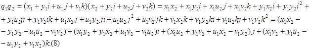 По определению операции сложения и умножения кватернионов производятся по обычным правилам раскрытия скобок и приведения подобных членов с учетом правил (5) – (6).