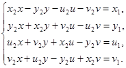 Полученное равенство равносильно системе четырех линейных уравнений с переменными x, y, u, v :