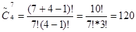 : Покупка не зависит от того, в каком порядке укладывают купленные пироженные в коробку. Покупки будут различными, если они отличаются количеством купленных пирожных хотя бы одного сорта. Следовательно, количество различных покупок равно числу сочетаний четырех видов пироженных по семь -
