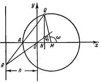 и прямая х= - h . Возьмем произвольную точку Q этой окружности и проведем прямую QA и прямую QN , перпендикулярную к оси абсцисс (рис. 2). Из точки пересечения R прямой QA с прямой х= -h проводим прямую RO до пересечения ее в точке Q 1 с прямой QN. Таким образом, точке Q на окружности будет поставлена в соответствие точка Q1 . Геометрическое место точек Q1 представляет собой декартов лист.