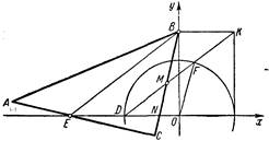 Действительно, обозначив середину отрезка ОЕ через D , замечаем, что поскольку ВС=ЕО, ê ВСЕ= ê ВЕО, откуда /_ ВЕО = /_ СВЕ, и, следовательно, ê NBE — равнобедренный, а так как Е D =ЕО/2=ВС/2=ВМ, то отрезок DM параллелен отрезку BE . Пусть, далее, точка К есть точка пересечения с продолжением отрезка DM прямой, проходящей через точку В параллельно оси абсцисс. Опишем окружность с центром в начале координат и радиусом, равным OD, и проведем к ней касательную во второй точке пересечения с прямой ЕО. Она пройдет, очевидно, через точку К. Обозначив точку пересечения прямой DMK с окружностью через F , заметим, что треугольники DOF и МВК равны между собой. Из равенства их следует, что DF = MK , а значит, и DM = FK . Последнее равенство и показывает, что геометрическое место точек М будет циссоидой.