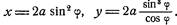 Пользуясь формулами перехода от полярных координат к декартовым, найдем уравнение циссоиды в прямоугольной системе: