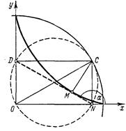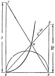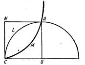 и на оси ординат отложить отрезок ОС == 2, соединить затем точку С с точкой А(1, 0), а точку пересечения прямой СА с циссоидой соединить с точкой О и продолжить полученный отрезок до пересечения с касательной, то, как это следует из формул (5) и (6), отрезок AD и будет равен ![]()