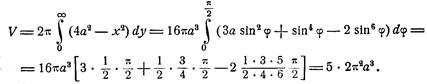 и, как видно, равна восьми диаметрам производящего круга. Объем тела, полученного от вращения кардиоиды вокруг ее оси, равен ![]()