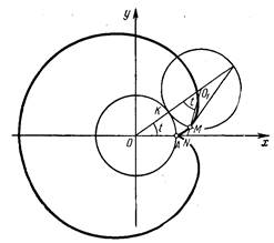 Так как ОМ = OB + ВМ, или r == 2r cos j + 2r, то геометрическим местом точек М будет кардиоида с уравнением r = 2r (1 + cos j).