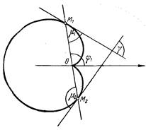 2. Угол m, составляемый касательной к кардиоиде с радиусом-вектором точки касания, равен половине угла, образуемого этим радиусом-вектором с полярной осью. Действительно![]()