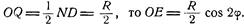 Действительно, пусть ОМ есть перпендикуляр, опущенный на касательную к окружности с радиусом, равным 2r, проведенную в точке N.