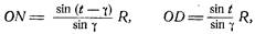 Полагая эти пересекающиеся прямые координатными осями, обозначим угол, составляемый прямой ND с осью абсцисс, через t. Тогда из треугольника OND (рис. 14) будем иметь: