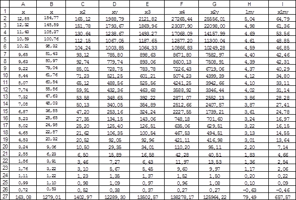 2.1 Построение эмпирических формул методом наименьших квадратов