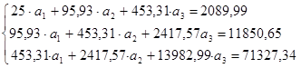 Для того, чтобы найти набор коэффициентов , которые доставляют минимум функции S , определяемой формулой (2.1.2), используем необходимое условие экстремума функции нескольких переменных - равенство нулю частных производных. В результате получим нормальную систему для определения коэффициентов :