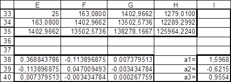 2. Сравнивая результаты, полученные при помощи функции ЛИНЕЙН видим что они полностью совпадают с вычислениями, проведенными выше. Это указывает на то, что вычисления верны.