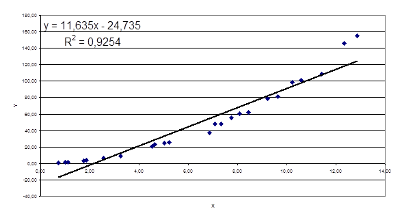 Очень часто, особенно при анализе эмпирических данных возникает необходимость найти в явном виде функциональную зависимость между величинами x и y , которые получены в результате измерений.