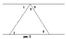 ? Классическое доказательство приведено на рисунке 2. Используется свойство углов при накрест лежащих прямых, и выходит, что Ð1+Ð2+Ð3=180о