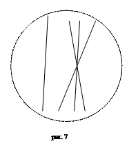 Но наглядно геометрию Лобачевского можно устроить и на бумаге. Если нарисовать окружность, то мы можем, не выходя за её пределы, провести сколько угодно прямых, не пересекающих данную (рис. 7). Взяв сферу, можно построить стереометрическую модель. Такая модель называется моделью Клейна.