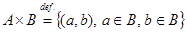 - мн-во всевозможных упорядоченных пар элементов из А и В.