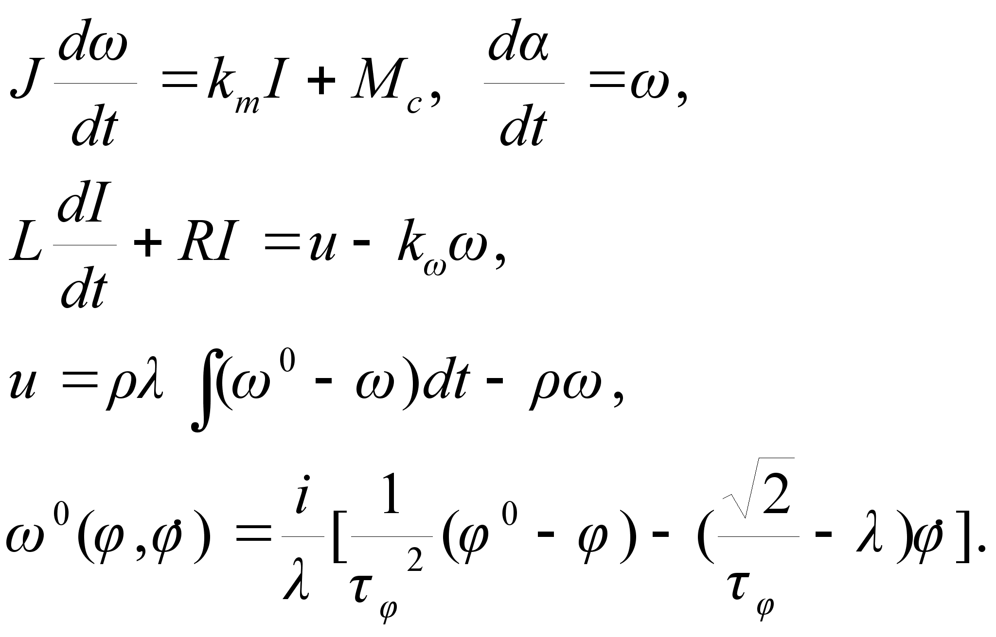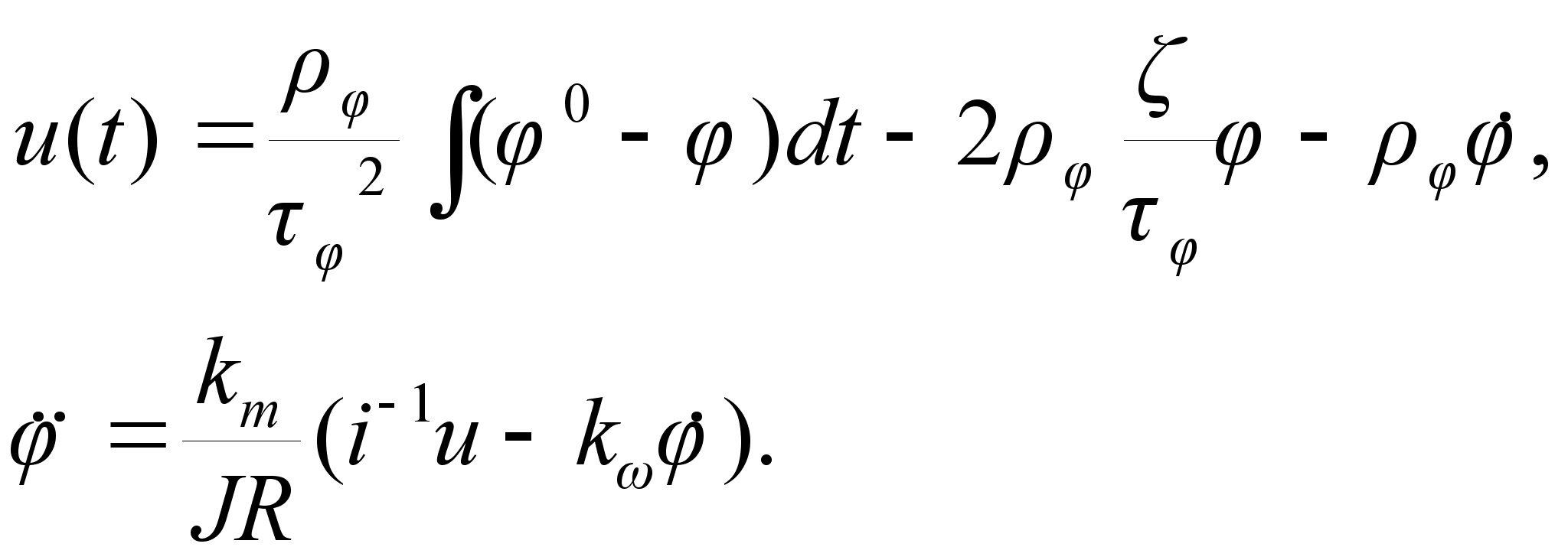 Законами управления по угловой скорости и угловому положению являются последние два соотношения.
